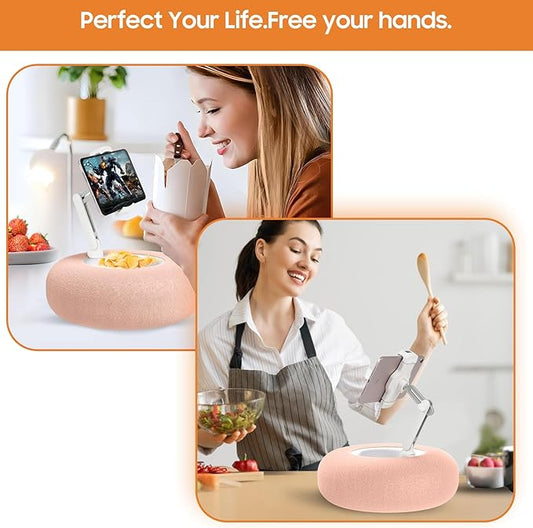 PlushPort™ | All-in-One Pillow Stand for Phones, Tablets & Snacks