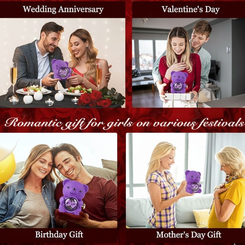 What it is: Bear-shaped keepsake box with preserved rose + hidden jewelry compartment