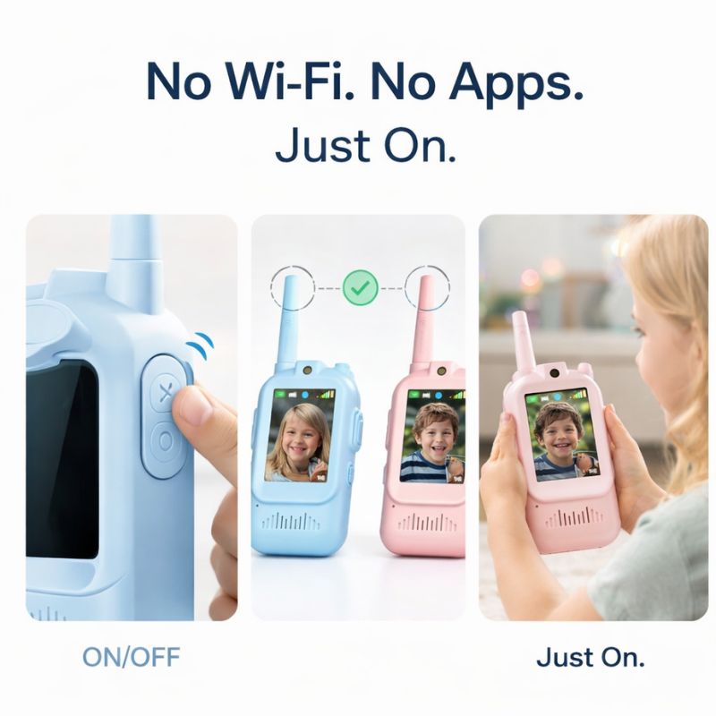 There is no Wi-Fi, no apps, no internet access, and no external connectivity, so children cannot browse, download content, or contact anyone outside the paired device.